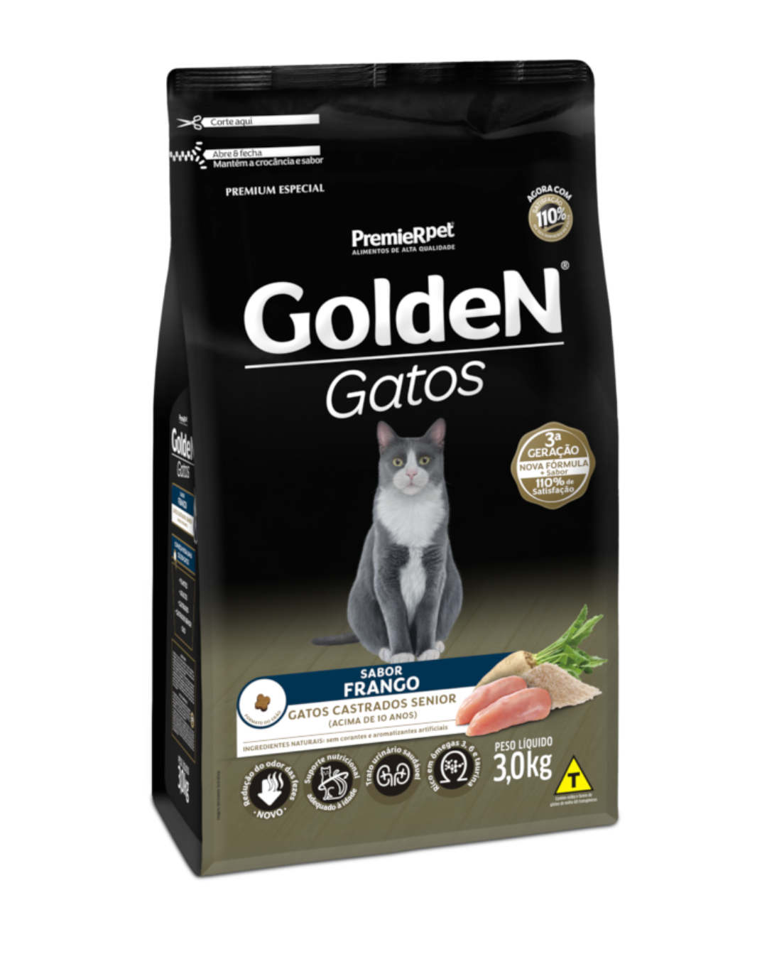 GoldeN® Gatos Castrados Sênior Frango, Arroz e Beterraba Branca 3kg